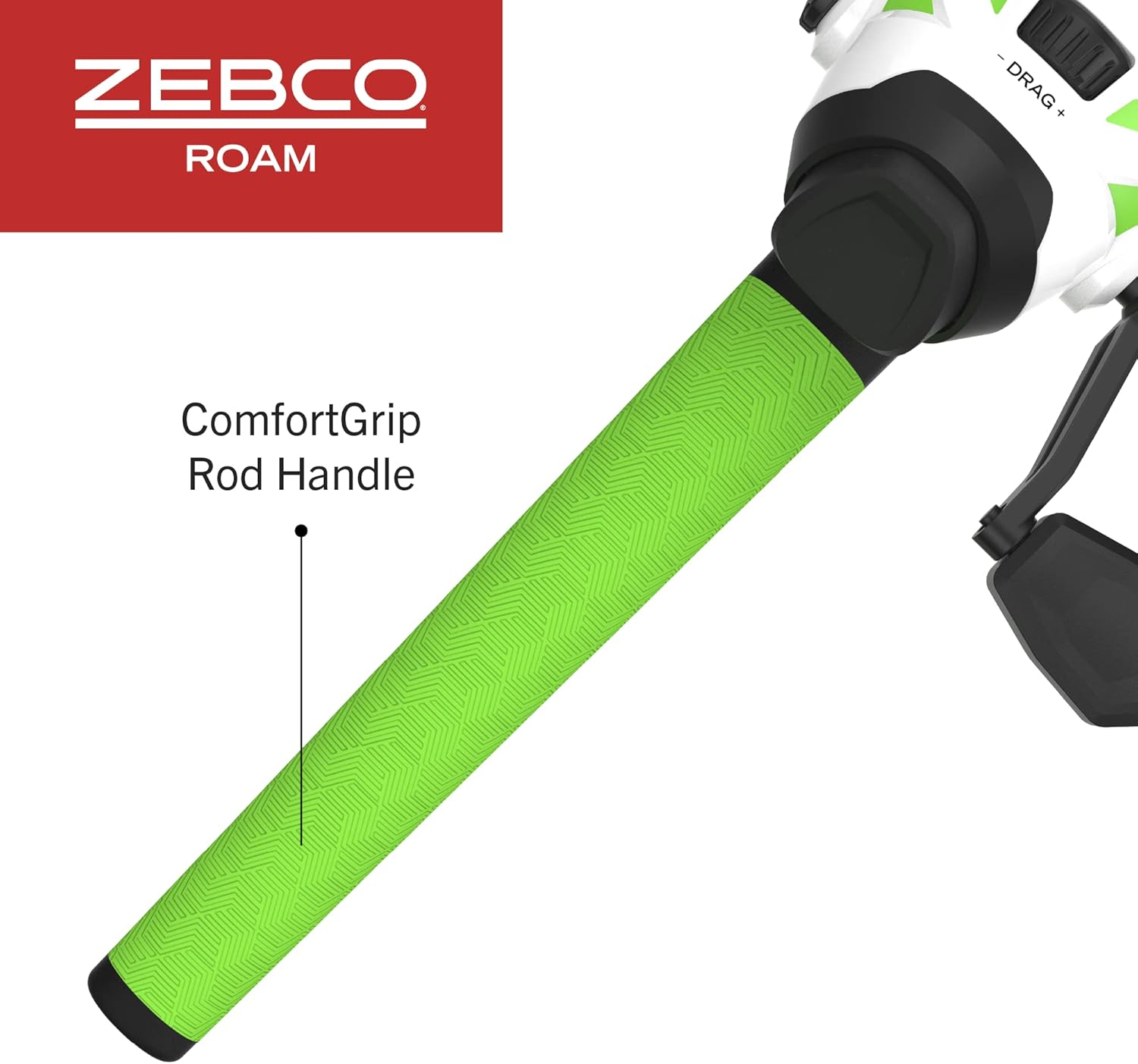 Zebco Roam Spincast Reel and Fishing Rod Combo, 6-Foot 2-Piece Fiberglass Fishing Pole with ComfortGrip Handle
