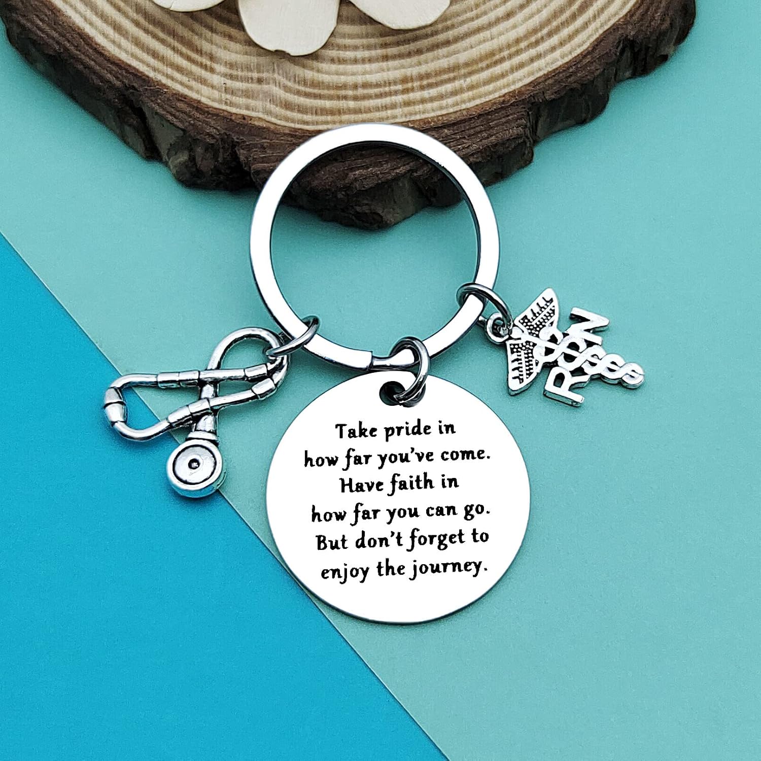 Inspirational Registered Nurse Gifts - "Take pride in how far you’ve come. Have faith in how far you can go. But don’t forget to enjoy the journey".Perfect inspirational gift for anyone involved in Nurse practitioner or graduate. RN Graduation Keychain Gift - Unique meaningful gift for nurse practitioner, nurse preceptor, rn nurse, new nurse, nursing student, retiring nurse, home care nurse, new grad nurse, kid’s nurse, nicu nurse, lpn nurse, ed nurse, lvn nurse, cna nurse, icu nurse or any other special nurse in your life. Graduation Gift for Women Men - This gift can be a ideal gift for nurse and nurse student graduates, and can also be given to friends, daughters,niece,nephew and girlfriend boyfriend of registered nurse as nurse week gift, graduation gifts for their birthdays and Christmas holidays. Registered Nurse Keyring - Made of stainless steel, it is lead free and nickel free, hypo allergenic, it doesn't rust, change colour or tarnish,very durable suitable for treasure.The pendant diameter:3cm. Perfect for using and cherish. Free Nice Velvet Pouch - The encouragement keychain will be wrapped beautifully, ready to be gifted. It's a gift that will truly last a lifetime. As a pleasing gift for any nurse, registered nurse, nursing Student and so on.