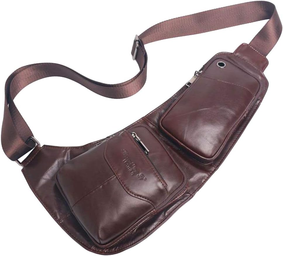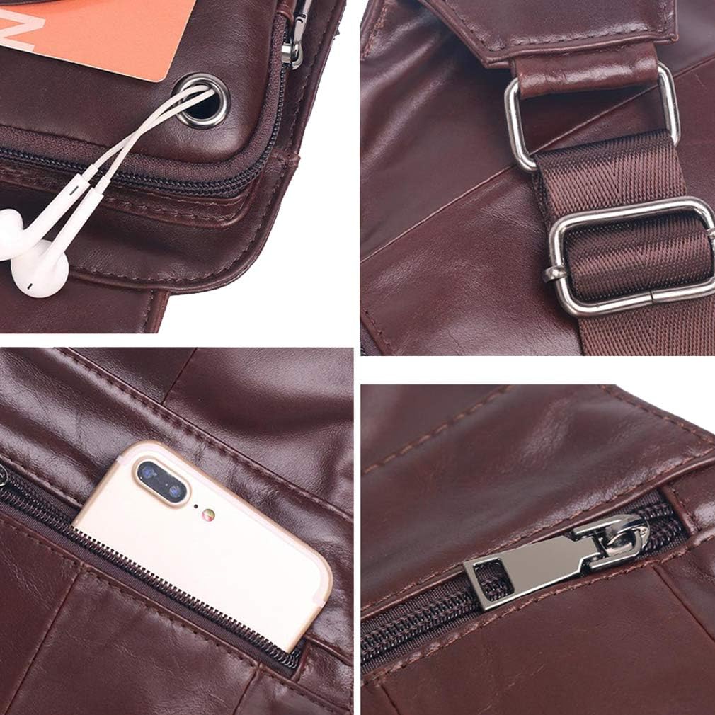 Leather Sling Bag Crossbody Backpack for Men Women Outdoor Travel Sports Hiking Camping Shoulder Chest Pack Business Casual Daypack
