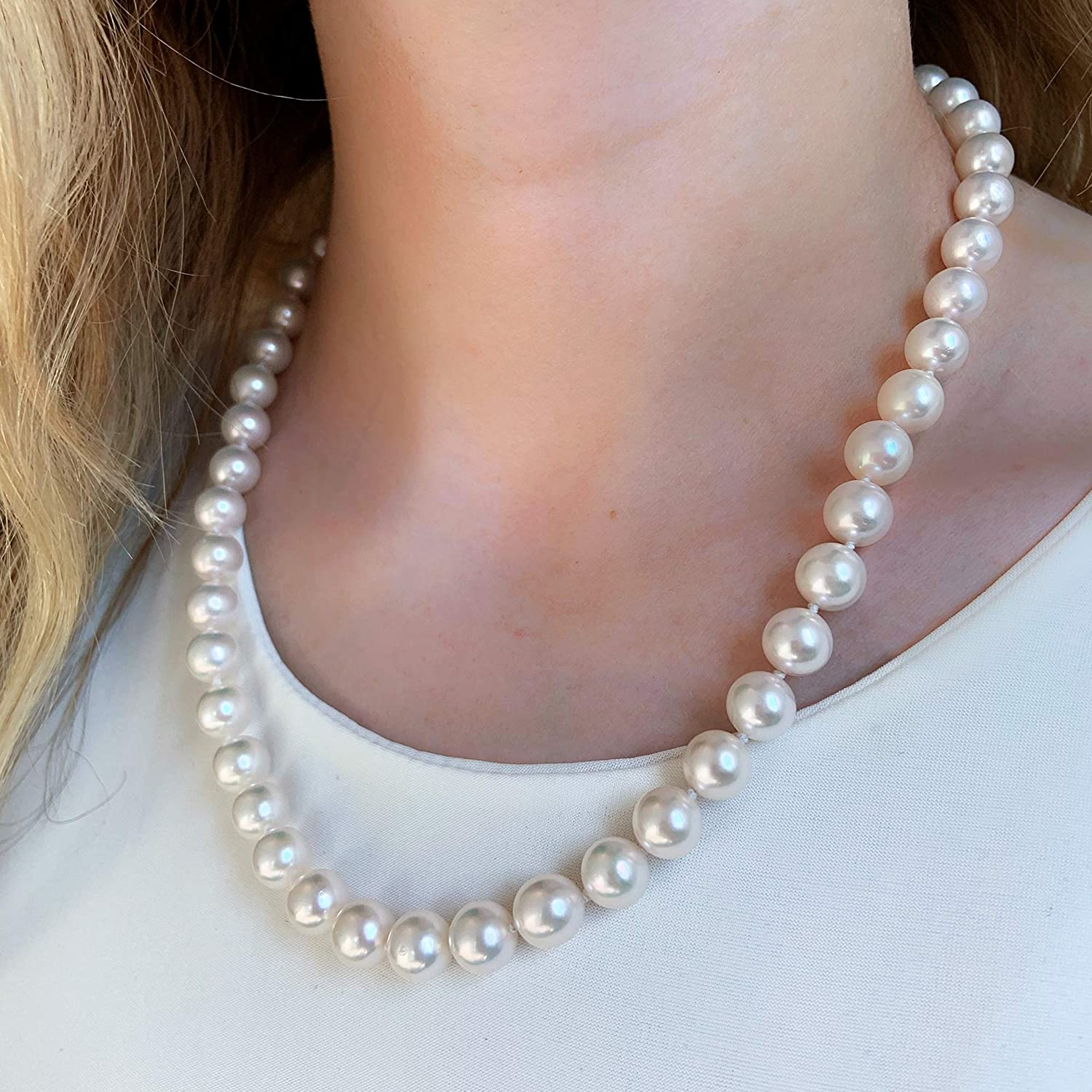• QUALITY AND VERSATILITY: Accent your look with the luminous glow with this lavish cultured Japanese Akoya pearl necklace. This classic yet modern necklace will add a hint of elegance to any outfit and works equally well with casual outfits or your little black dress. With its brilliant shine, this radiant necklace is secured with a fish eye clasp. This shimmering cultured Japanese Akoya pearl necklace is the perfect addition to any jewelry collection.