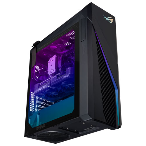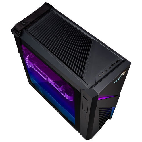 Enjoy intense and seamless gameplay with this ASUS ROG G16CHR gaming PC. Featuring Intel Core i7-14700F processor, 32GB DDR5 U-DIMM RAM, and NVIDIA GeForce RTX4070 GPU, this PC ensures smooth gaming and multitasking. With 1TB solid state drive, you will have more storage space with quick read and write time. Sleek design and RGB lighting significantly improve the aesthetics.