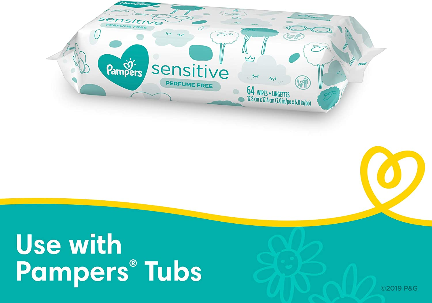 Includes: 8 Pampers Sensitive Perfume Free Pop-Top Packs (72 ct) and 4 Pampers Sensitive Perfume Free Refill Packs (72 ct), all bundled together for you