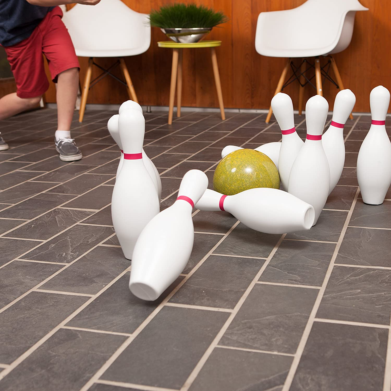 • BRIGHT COLOR - Bowl with bold speckled yellow; perfect for physical education, gym classes at school, lawn recreation, your home game room, and plastic or foam pin sets