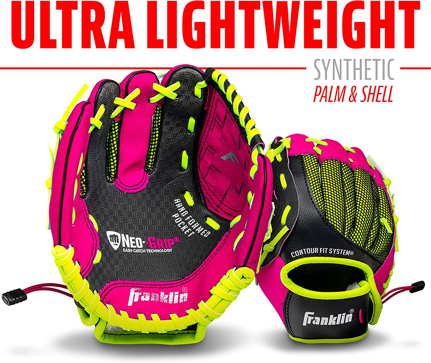 Franklin Sports Teeball Glove - Left and Right Handed Youth Fielding Glove - Neo-Grip - Synthetic Leather Baseball Glove - 9.0 Inch - Ready To Play Glove with Ball