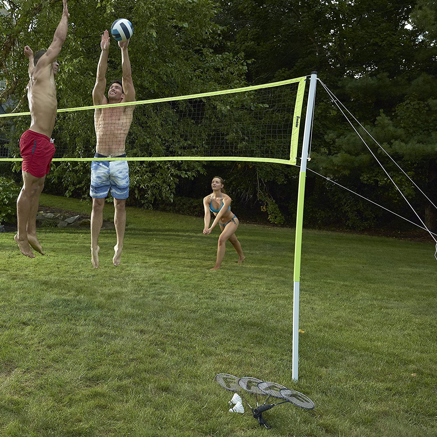 • BACKYARD OR BEACH FUN begins with this complete Volleyball & Badminton set