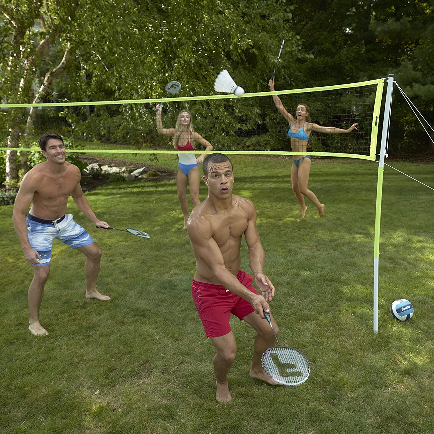 • INCLUDES: (4) "Tight String" tempered steel racquets with "soft-touch" padded grip and (2) A-grade shuttlecocks are included to allow for multiple players, (1) Volleyball and (1) Pump
