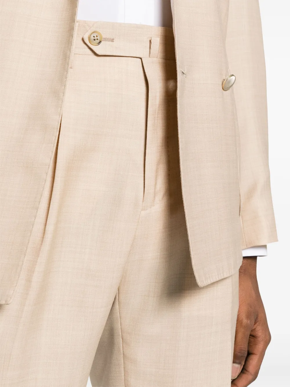 • two rear button-fastening jetted pockets
