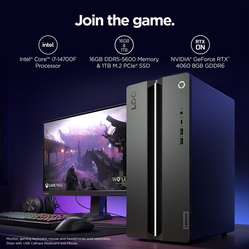 Lenovo LOQ Gaming PC (Intel Core i7 14700F/16GB RAM/1TB SSD/GeForce RTX 4060/Win 11) - Only at Best Buy
