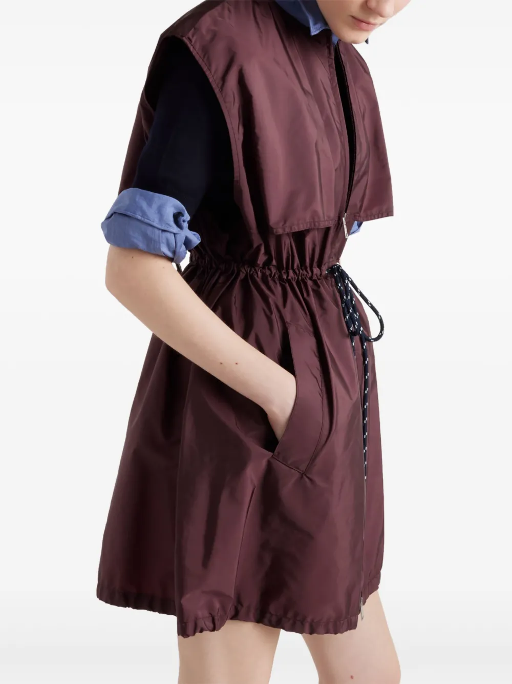 New SeasonPradaRe-Nylon mini dressHighlightswine red tied waist slip pockets to the sides storm flap V-neck CompositionRecycled Polyamide 100%Washing instructionsRead Manufacturer GuidelinesProduct IDsFARFETCH ID: 28215848Brand style ID: 230730SOOO1WQ9