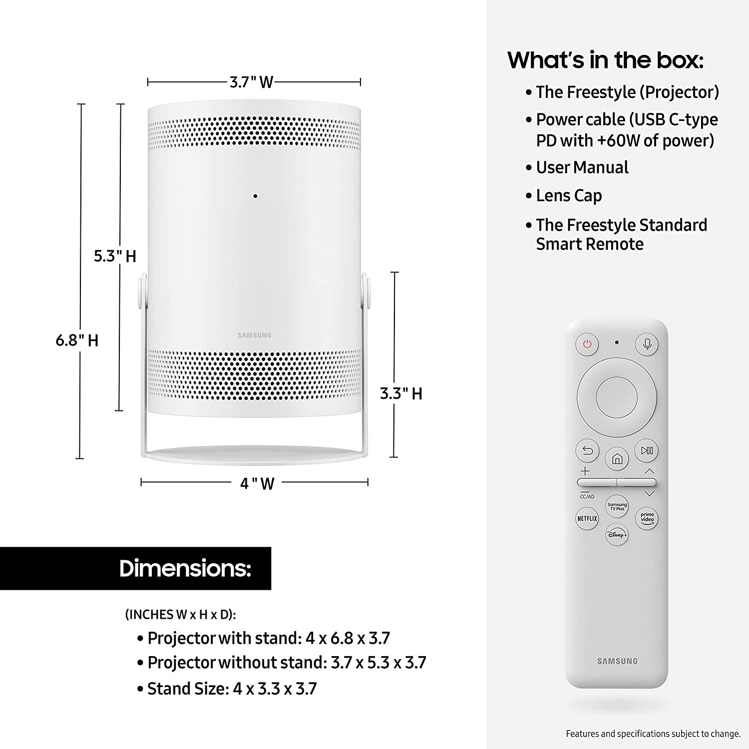 MULTI VOICE ASSISTANT: Say hello to your favorite Voice Assistant; Bixby, Amazon Alexa and Google Assistant are built into The Freestyle; Simply use your voice to find the content you love, turn up the volume, control your connected home and more