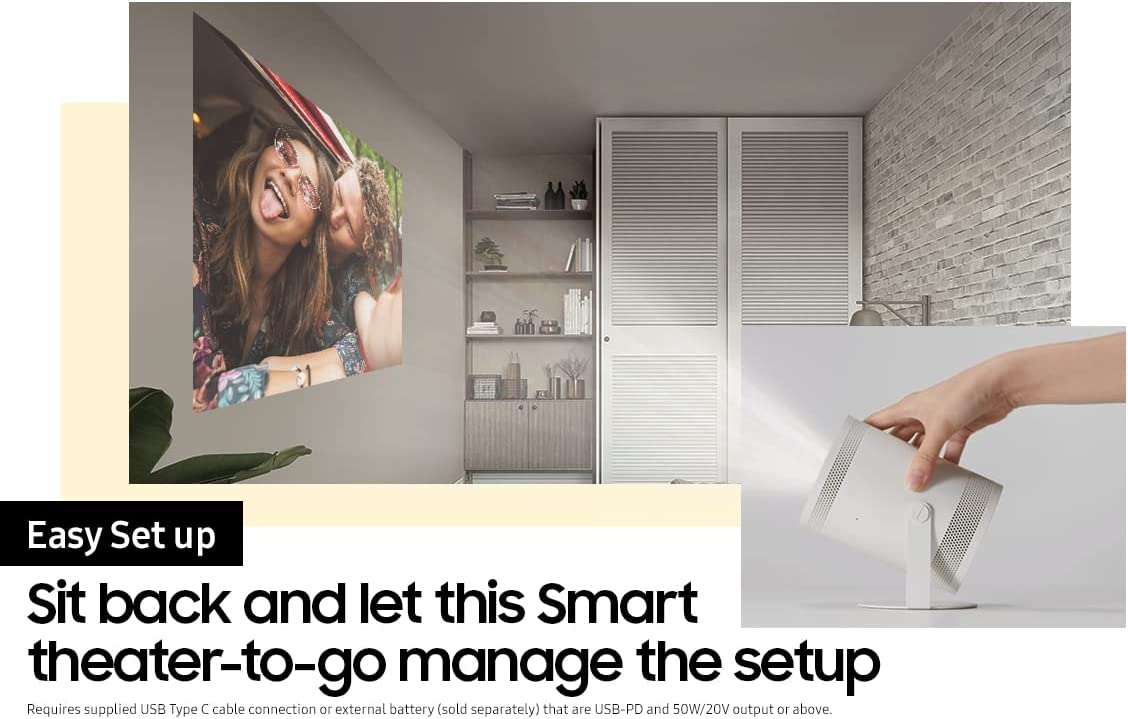 EXTERNAL BATTERY COMPATIBLE: Now the big screen experience is as mobile as you are; Just grab The Freestyle with an external battery pack and go; With no outlet needed, you’re free to watch your favorite shows, play games or whatever you want, anywhere you want—indoors or outdoors