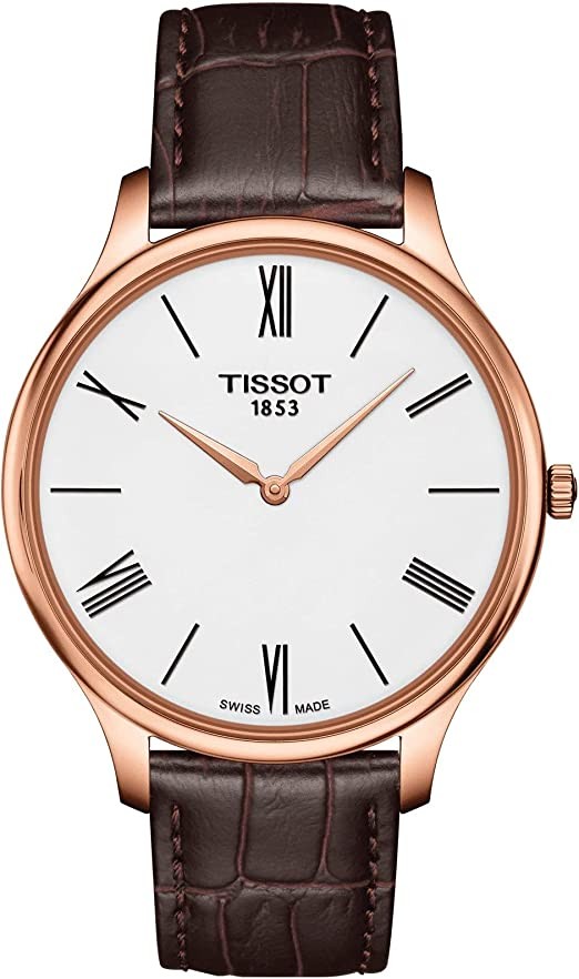 A touch of vintage and some vintage details, all housed in a 1950s curved enclosure, combine to create the Tissot heritage. The new model has a very thin casing, less than 5.5 mm, consisting of 2 hands and a Roman index.