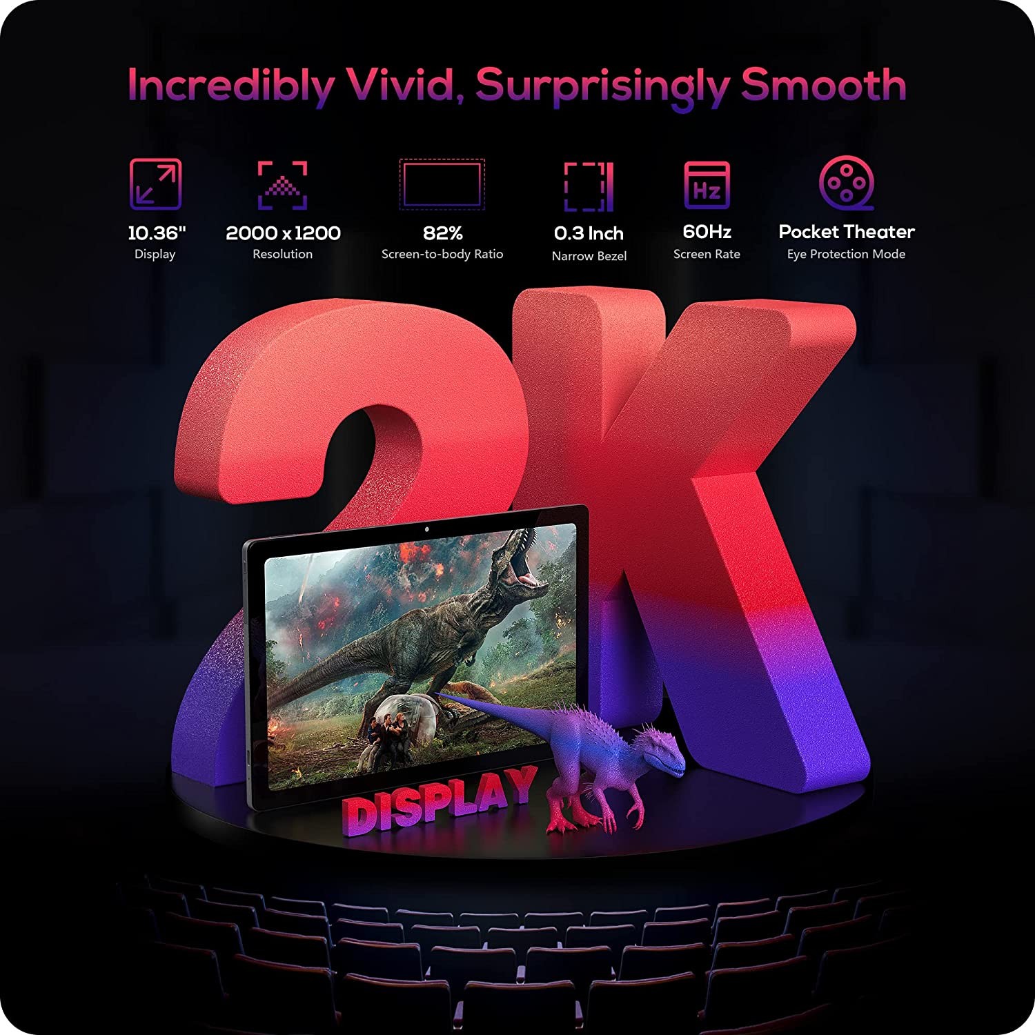 【Better Screen, Better Enjoyment】Everything you do look incredibly brilliant with a 10.36" 1200*2000 ultra-thin full laminated touch screen, no air gap, no bounced light for clear images. Four stereo speakers, 1080P/60FPS videos supported. Lose yourself in your favorite movies & games with a cinematic-like bright 300 nits display with eye protection mode, the screen adapts to your environment and constantly give you perfect color and lessen eye strain by reducing harmful blue light.