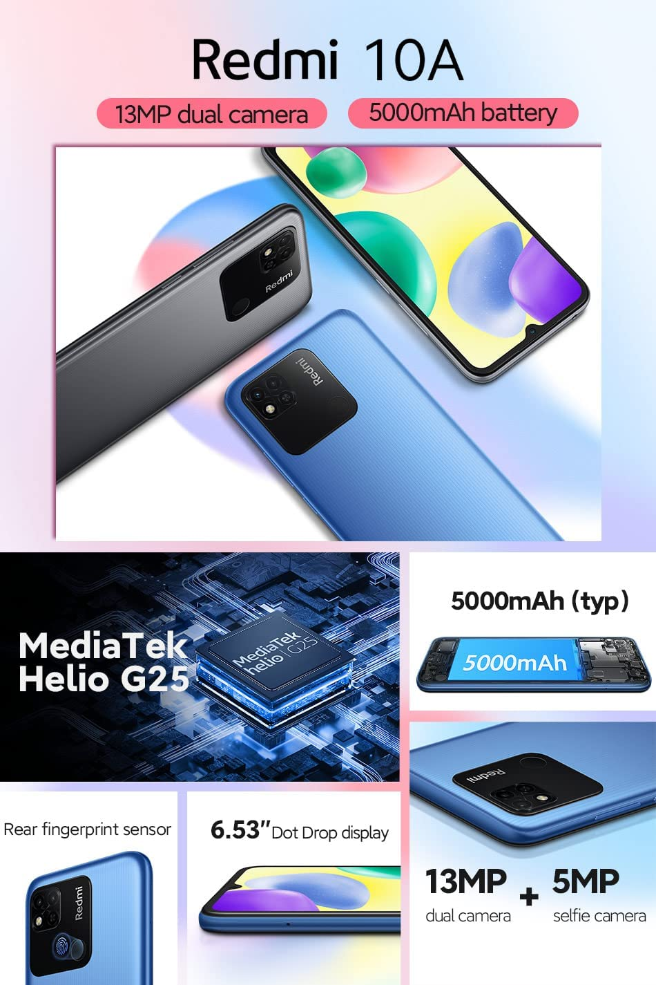 • 【2 + 1 Card Slot Design】:Supports dual nano-SIM card + microSD expansion, either card can be set as the primary card. Redmi 10A comes with a dedicated microSD card slot and support up to 1TB expandable storage, store your precious photos and videos with ease.